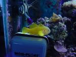 I am trying two new products at the moment, one is a food for corals called Coral Vibrance. It is a fine powder that can be fed 2- 3 times per week. I have been using it for about a week now. The coral polyps obviously like it as they wrap around the particles with vigour as soon as it is put in the water column. I am also experimenting with Seachem Flourish (iron). This is a freshwater plant food which is high in iron. Having spoken at length to one of the regulars at my LFS, I was told that putting the iron in the sump with caulerpa gave it a "bit of a boost". When first put in my sump, the caulerpa did a fantastic job and grew quickly. Over the last few months though, the growth has slowed with yellowing of the leaves and small holes appearing. I first added the supplement yesterday which made the tank cloudy. Initially, panic set in but it was soon apparent there was no effect on the inhabitants and it soon cleared. Today you wouldn't even know there had been anything wrong.