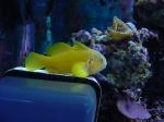 There have been some new arrivals in the tank recently. I bought 3 yellow clown gobies the week before the tang died. I didn't have a chance to update with their details before. They are cute little things and have currently taken to perching on the algae magnet as well as some of the open rocks. They tend to hide quite a lot at the moment, but they are the smallest fish in the tank at the moment!!